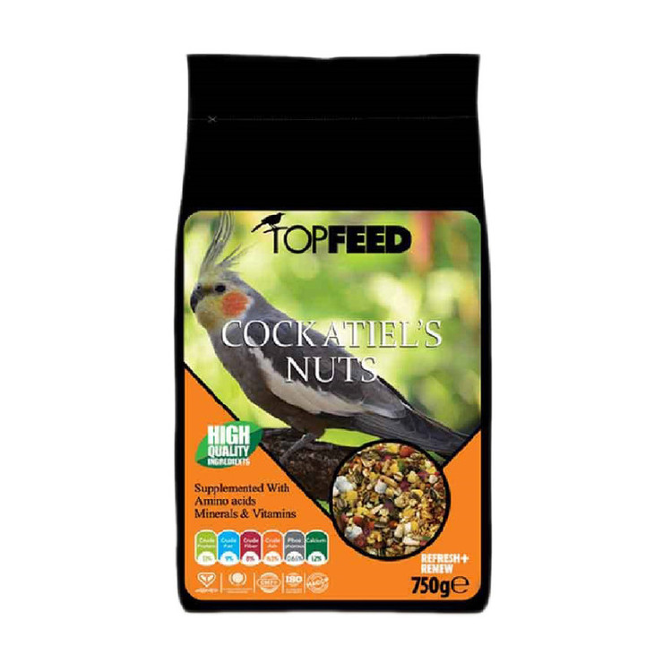 غذای آجیلی عروس هلندی تاپ فید مدل Cockatiles Nuts وزن 750 گرم ، مخطولی از دانه های مغذی لازم جهت رشد و حفظ سلامتی پرنده و همچنین بهبود عملکرد ذهنی و دستگاه گوارش می باشد. این محصول حاوی دانه های: کتان، اسیدهای چرب امگا 3، 6 و DHA، تخمه آفتابگردان، شاهدانه، بذرک، بذر سبزیجات، انواع آجیل، میوه های خشک، صدف، مویز، پری بیوتیک ، پروبیوتیک، ویتامین و مواد معدنی مورد نیاز پرنده می باشد و دارای تاییده سازمان دامپزشکی است.
