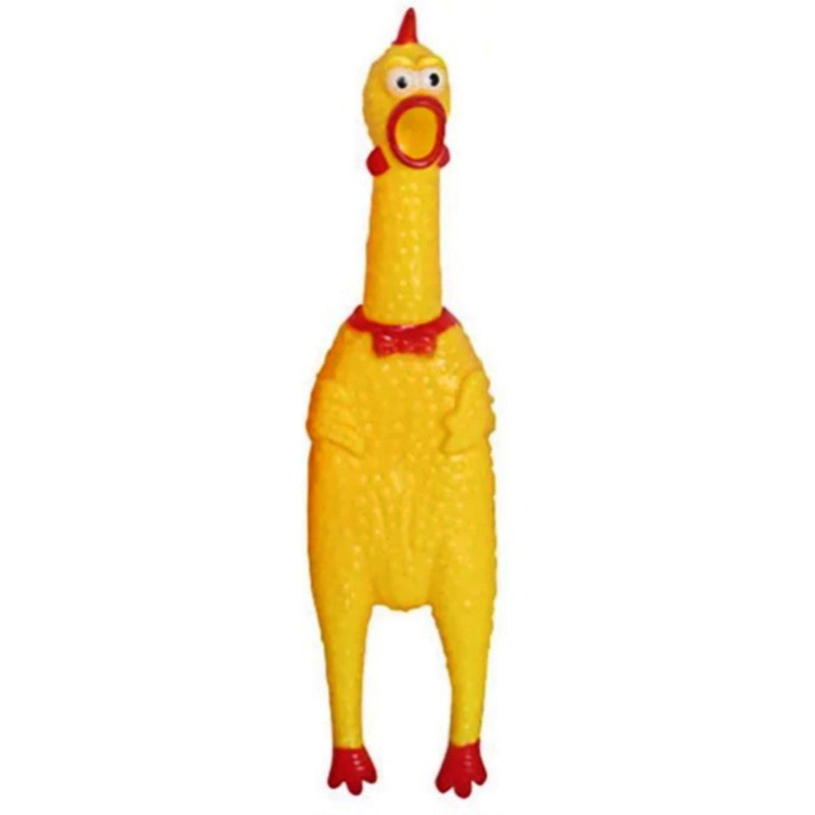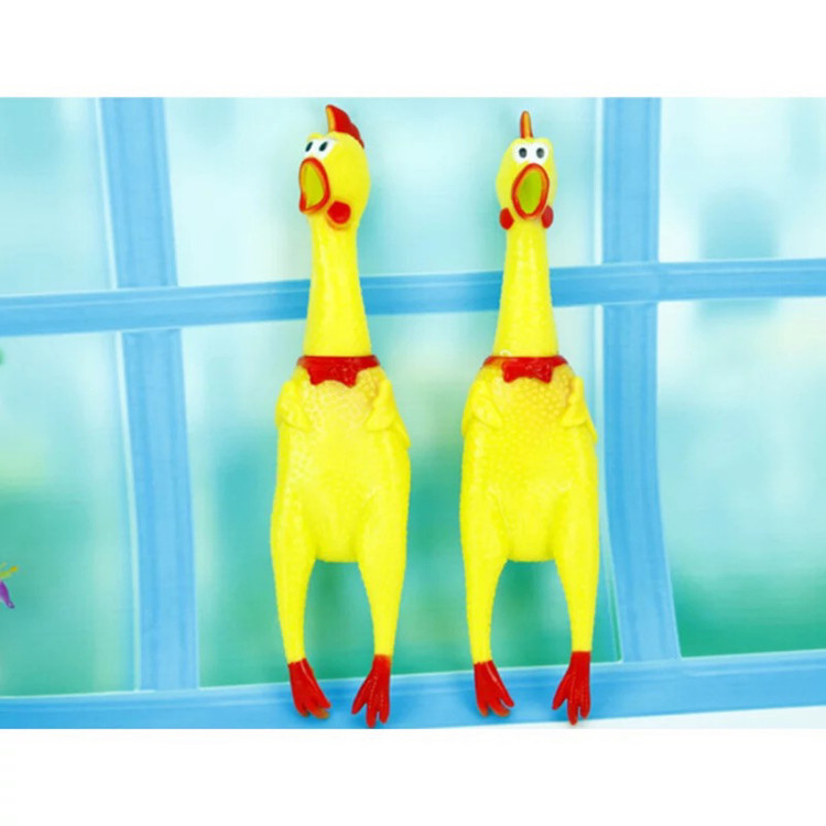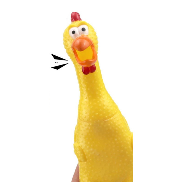 این مرغ یک مرغ معمولی نیست . بلکه علارغم زیبایی و جذابیتی که در ظاهر این مرغ وجود دارد با فشار دادن شکم آن ناله و زجه ای فوق العاده طبیعی شبیه صدای تخم گذاشتن یک مرغ از وجود او بیرون خواهد آمد گویی اطرافیان گمان خواهند کرد که اکنون یک مرغ واقعی داخل خانه در حال جیغ کشیدن است. ساخته شده از پلاستیک درجه یک و مقاوم برای بازی حیوانات خانگی شما .