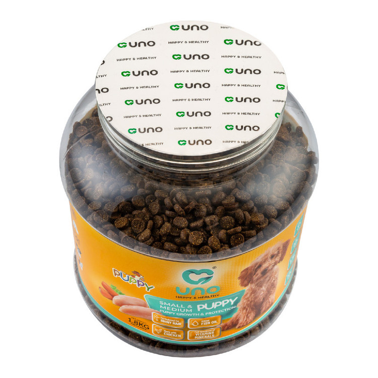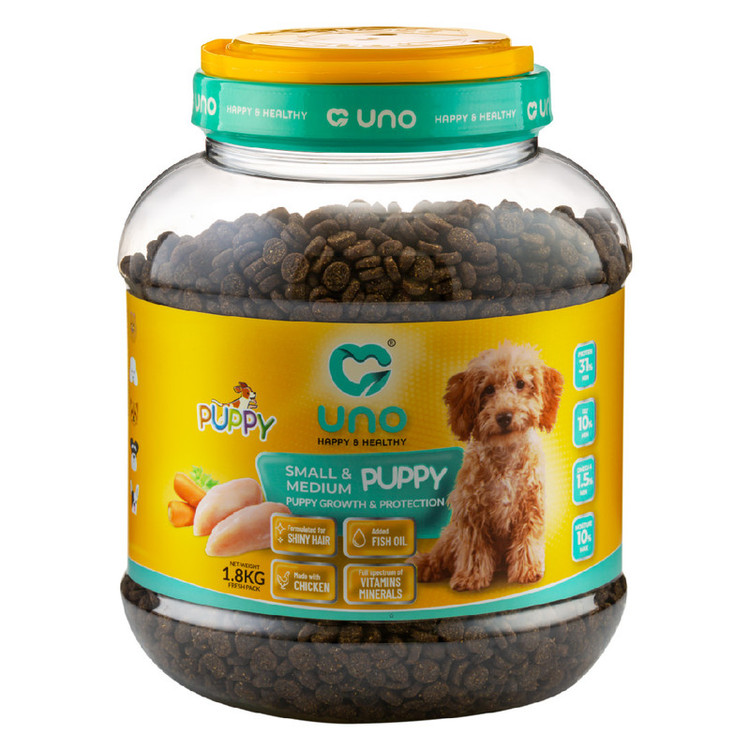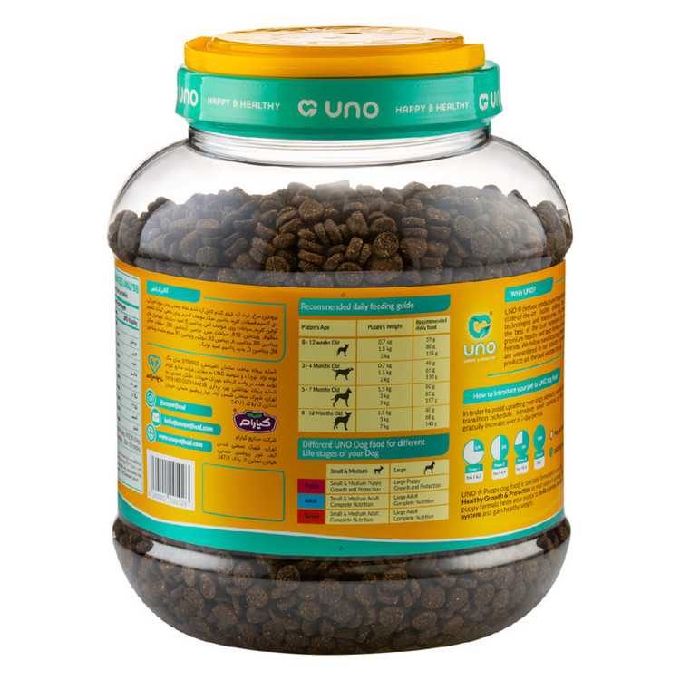 غذای سوپر پریمیوم سگ توله نژاد کوچک و متوسط اونو UNO یک غذای بسیار خوش خوراک با 31% پروتئین خالص آزمایش شده است. کلیه محصولات اونو حاوی سری کامل ویتامین ها و مواد معدنی تامین شده از BASF آلمان، DSM هلند و Adisseo فرانسه میباشند. این غذا کلیه ویتامین ها و مواد معدنی مورد نیاز سگ شما را تامین میکند و نیازی به مکمل اضافی ندارید.