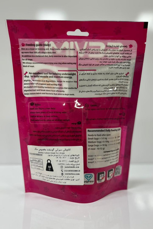 تشویقی سگ سیرابی گوسفند Sevimli یک انتخاب عالی برای صاحبان سگ است که به دنبال تقویتی مغذی و خوشمزه برای حیوان خانگی خود هستند. این تشویقیها با بافت نرم و لذیذ، برای انواع نژادها و اندازههای سگ مناسب بوده و به عنوان یک میانوعده یا ابزاری کمک آموزشی قابل استفاده است. به دلیل محتوای بالای پروتئین، این تشویقی سگ میتواند به عضلهسازی در سگها، به خصوص سگهای کموزن، کمک کند و انرژی مورد نیاز آنها را تأمین کند. همچنین برای سگهای باردار و شیرده نیز مفید است، چرا که نیازهای غذایی آنها را به طور مؤثری تامین میکند.