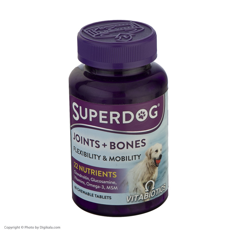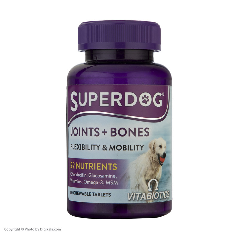 قرص مکمل سگ ویتابیوتیکس مدل SuperDog Joints Bones بسته 60 عددی