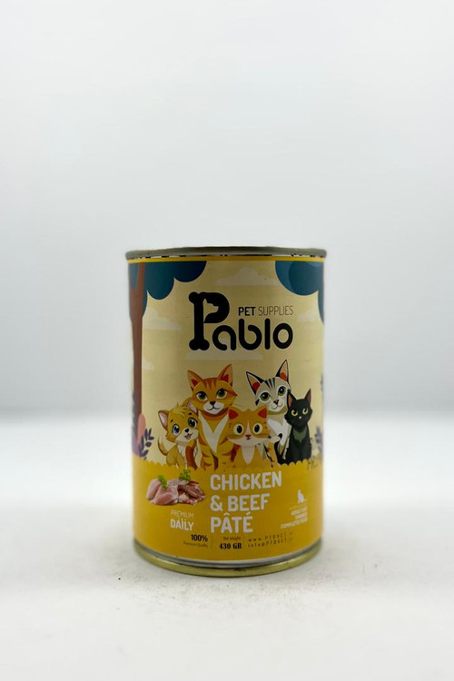 کنسرو پته مرغ و گوشت و گوساله گربه بالغ پابلو 400گرمی
