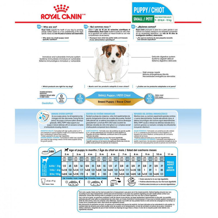سگ های کوچک دوره رشد بسیار فشرده و سختی دارند. اگر با انرژی و پروتین کافی تأمین شوند وزن بدنشان در 10 ماه 20 برابر میشود. سگهای کوچک که در زمان تولگی بدرستی تغذیه میشوند حتی ممکن است به سن 13 تا 16 سالگی نیز برسند. غذای خشک Royal Canin Mini Puppy, خصوصیات منحصر به فرد و مورد نیاز نژاد کوچک (1-10کیلوگرم) را از دو ماهگی برآورده میکند.
